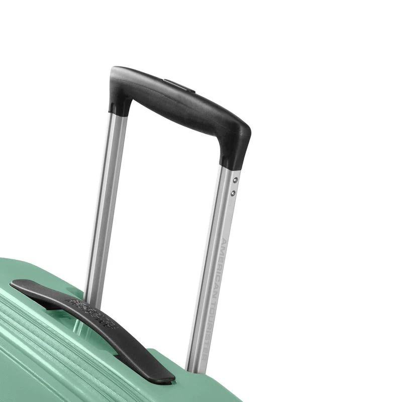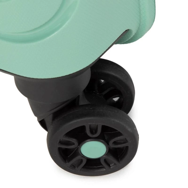 Elle est équipée de 4 roulettes multi-directionnelles permettant au bagage de pivoter à 360° et ce, dans de multiples directions par le biais une poignée de traction télescopique multi-positions à double tube pour un plus grand confort. Il est également possible de soulever le bagage grâce à la présence de deux poignées de portage, l’une située sur le dessus l’autre sur le côté latéral.