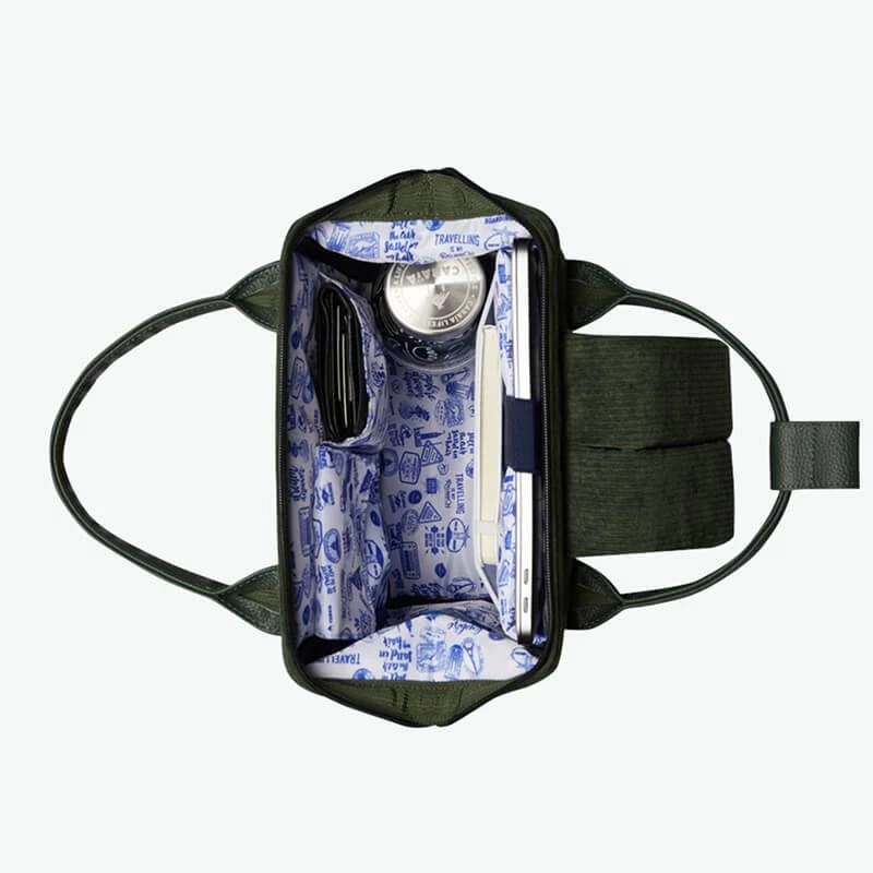 Un sac à dos tendance du quotidien, il est adapté pour transporter une tablette 10.5″ dans une poche dédiée avec un velcro pour un maintien optimal. Offrant un volume de 12 litres, il est parfait pour répondre aux besoins de tous les jours et même d’une excursion lors d’un week-end. Dès son ouverture grand angle via un système à zip YKK bi-directionnel, un intérieur entièrement doublé d’un imprimé ludique propose un compartiment principal pour accueillir affaires et documents. En complément de rangement : deux poches plates, une poche filet ainsi qu’une attache élastique pour maintenir une bouteille d’eau.