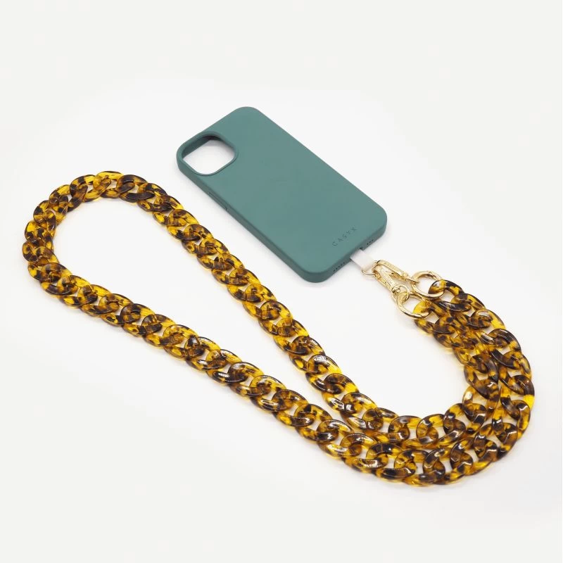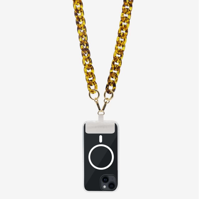 Pratique, la chaîne permet de porter votre téléphone autour du cou ou en bandoulière. Elle est compatible avec tous les téléphones et a une longueur de 118 cm avec les anneaux et mousquetons.