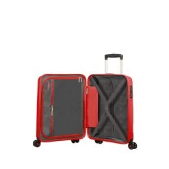 A l’intérieur de cette valise cabine 2 roues Delsey, un compartiment principal et unique est à disposition et offre une capacité d’accueil de 34 litres. Grâce à la présence d’un soufflet, le volume peut s’accroître de 7 litres supplémentaires. Cet espace spacieux entièrement doublé est équipé de 2 sangles de maintien ajustables, parfait pour maintenir ses affaires en place durant un voyage. Il y a également directement sous le rabat supérieur une grande poche zippée, elle même dotée d’une petite poche plate transparente servant comme porte-étiquette.