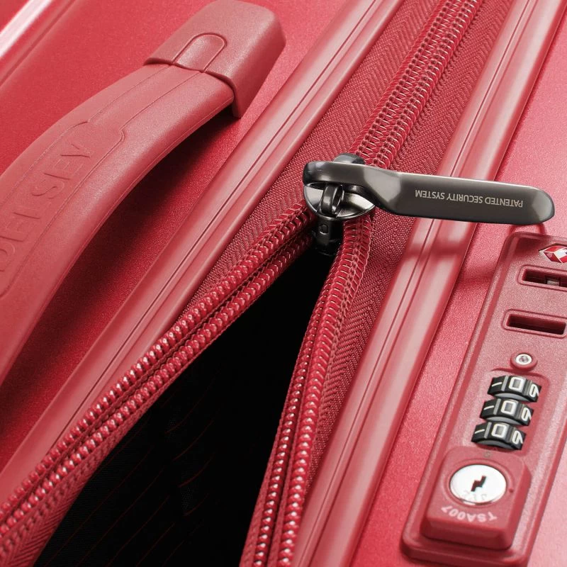 En terme de sĂ©curitĂ©, la Caumartin plus de Delsey se ferme intĂ©gralement par une glissière Ă zip Securitech 2 (3 fois plus rĂ©sistante qu’une glissière standard) dont les curseurs peuvent se rejoindre et se sceller au sein d’une serrure intĂ©grĂ©e Ă code normĂ©e TSA. Très pratique pour passer les contrĂ´les douaniers internationaux sans se soucier que le bagage soit endommagĂ©. Seule la douane dispose des clĂ©s.