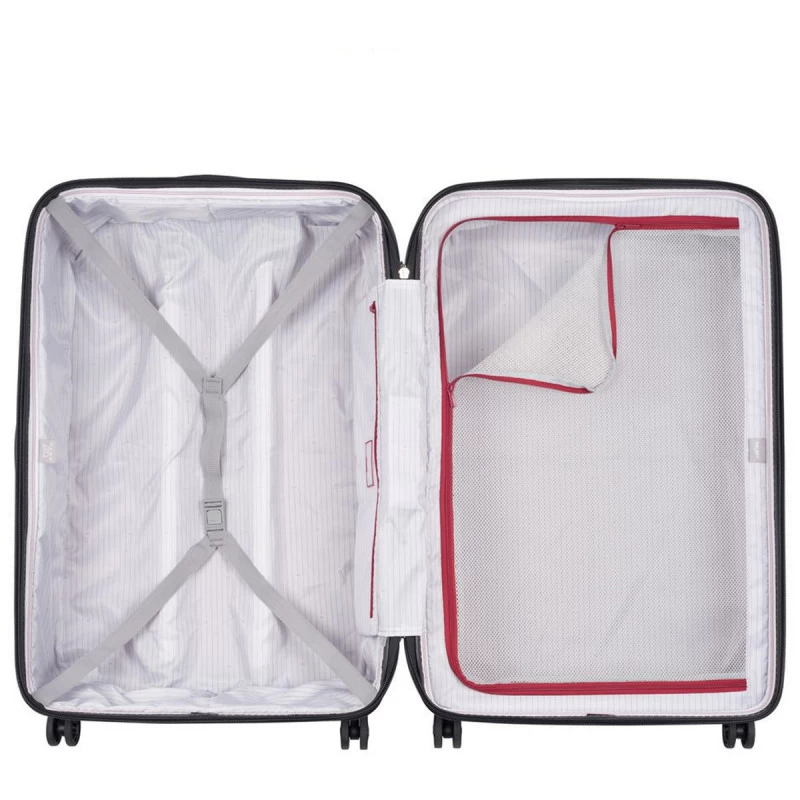 Sa conception en polycarbonate lui confère une résistance à toutes épreuves vous permettant de transporter toutes vos affaires en toute sécurité. A l’intérieur vous trouverez deux compartiments distincts, l’un fermé par un séparateur zippé avec une poche en filet, l’autre contenant des sangles de maintien pour vos vêtements. L’intérieur est entièrement doublé et dispose d’une poche intérieur latérale. Sa grande capacité vous permet de partir en vacances sans avoir peur d’avoir oublié quelque chose.