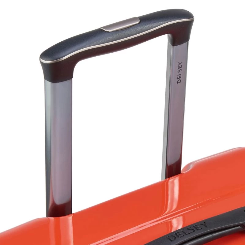 En terme de transport, ce bagage de taille XL Delsey offre la possibilitĂ© d’ĂŞtre tractĂ© de manière fluide grâce Ă ses 4 doubles roulettes multidirectionnelles, et une barre trolley tĂ©lescopique double tube. Il est aussi possible de le tenir Ă main grâce Ă ses 3 poignĂ©es de portage : supĂ©rieure, latĂ©rale et frontale (en position horizontale).