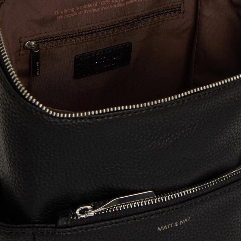 Découvrez le Sac à dos Brave Purity 13 pouces 35,5 cm à l’allure très chic. La marque Matt & Nat propose des produits 100% Vegan, elle tient à ce qu’il n’est aucun composant d’origine animale dans la fabrication. La gamme Purity propose une composition en PVB, c’est-à-dire en Poly-Butyral de Vinyle. Le PVB est une matière plastique majoritairement utilisée dans la fabrication des verres feuilletés : pare brise automobile, vitrage, etc. L’utilisation du PVB recyclé permet de réduire l’empreinte carbone. Le modèle Brave est présenté ici dans le coloris Tarte, un ton violet uni très joli.
