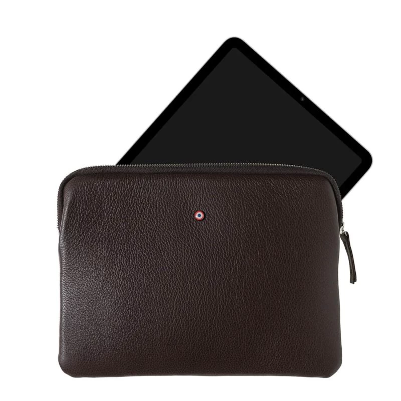 Les autres atouts de la pochette pour Ipad de Larmorie Guillaume 11 pouces en cuir grainé dans le coloris uni Terre brunie :