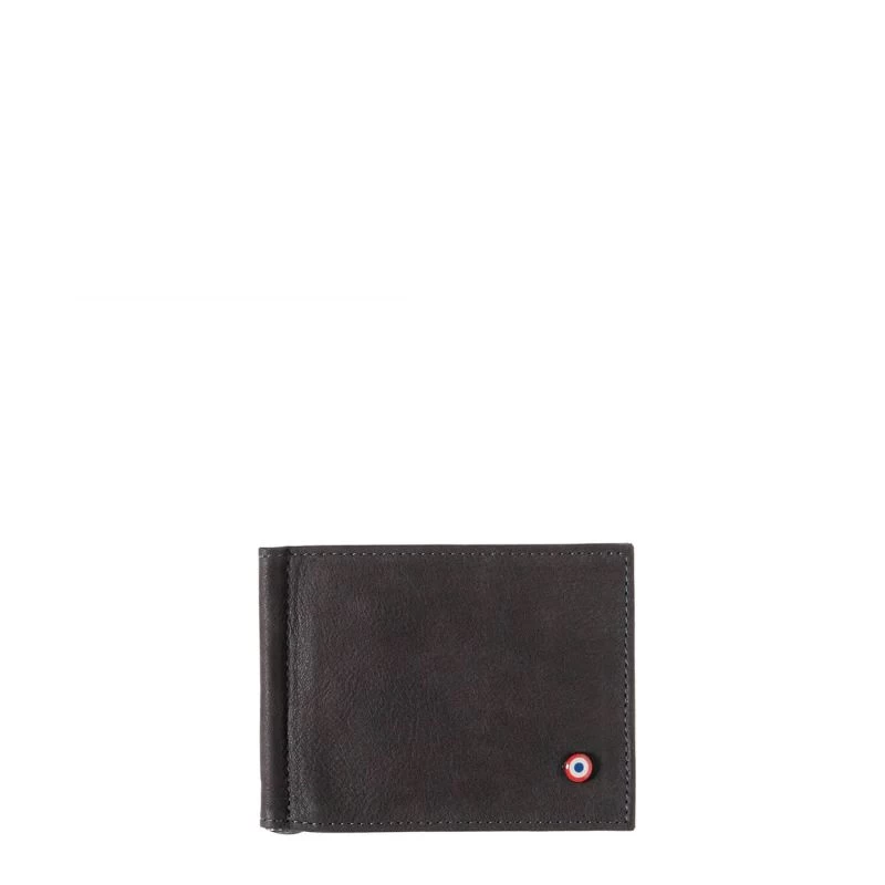 Le portefeuille italien Hector Made in France de Larmorie en cuir Nubuck dans le coloris uni Nuage gris : Petit format de poche au cuir souple et doux avec une pince à billets