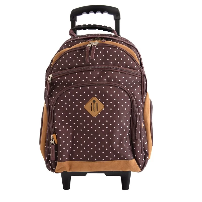 Le sac à dos à roulettes à Pois blancs et fond marron de la marque Snowball permet d’emporter le nécessaire des fournitures scolaire avec confort et organisation. Une utilisation adaptée à partir du CE2. Conçu pour faciliter les trajets de votre enfant, trolley et roulettes permettent de le tracter avec fluidité. Son espace de rangement spacieux permet d’emporter toutes les affaires utiles au bon déroulement de la journée ou un peu de linge s’il vient à servir comme sac d’appoint le temps d’un week-end. Pour ne rien gâcher, il est proposé à un rapport qualité/prix très attractif.
