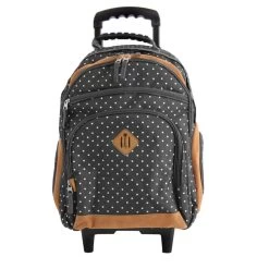 Le sac à dos à roulettes à Pois blancs et fond noir de la marque Snowball permet d’emporter le nécessaire des fournitures scolaire avec confort et organisation. Une utilisation adaptée à partir du CE2. Conçu pour faciliter les trajets de votre enfant, trolley et roulettes permettent de le tracter avec fluidité. Son espace de rangement spacieux permet d’emporter toutes les affaires utiles au bon déroulement de la journée ou un peu de linge s’il vient à servir comme sac d’appoint le temps d’un week-end. Pour ne rien gâcher, il est proposé à un rapport qualité/prix très attractif.