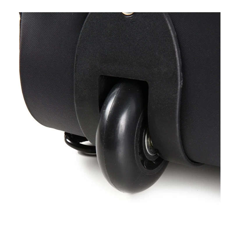 De plus, le sac dispose de 4 sangles avec des boucles « clips » à ouverture rapide, une bandoulière réglable et amovible, ainsi que deux roues simples et une poignée télescopique
