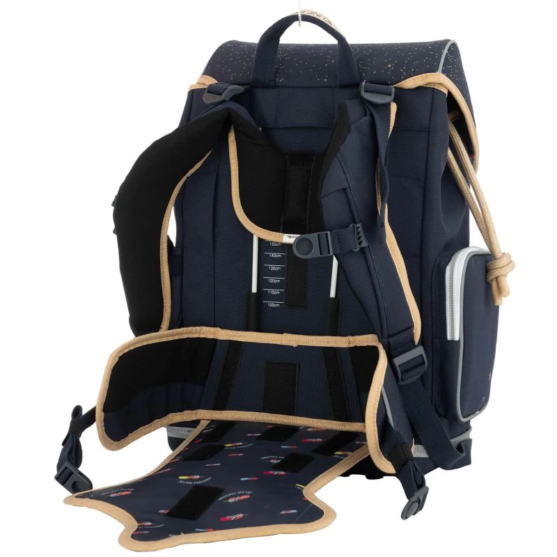 Ce sac à dos est parfaitement optimisé pour le rangement des affaires scolaires. En effet, il est composé de trois grands compartiments. Parmi celles-ci, deux permettent de ranger des grands cahiers et la dernière peut accueillir un ordinateur portable. Une poche est prévue pour ranger son déjeuner ou goûter si nécessaire.