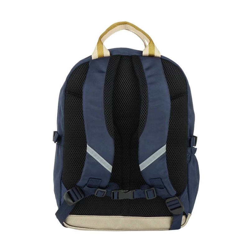 Les coutures sont renforcées aux points d’usure pour assurer la protection des affaires de votre enfant. Le sac à dos est également équipé d’une structure intérieure qui lui permet de garder sa forme même lorsqu’il n’est pas chargé. Pour un confort total, les bretelles et le dos sont renforcés en mousse. Entièrement doublé en toile imperméable en polyester recyclé, vous pouvez laver le sac à dos avec un peu d’eau et du savon.