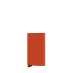 En terme de design, le Cardprotector se veut simple et épuré, il vise le minimalisme. La fonction avant tout. Son format est très compact, afin d’être discret dans son utilisation et rangement dans un sac. Il affiche également un poids plume agréable de 46g. L ‘étui est exposé ici dans son coloris Orange, un ton uni aux couleurs agrumes.