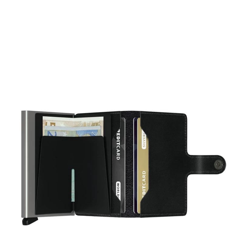 Le Miniwallet Original met à disposition des rangements supplémentaires : 4 encarts supplémentaires pour cartes et des espaces pour les billets, cartes de visites ainsi que pour les reçus.