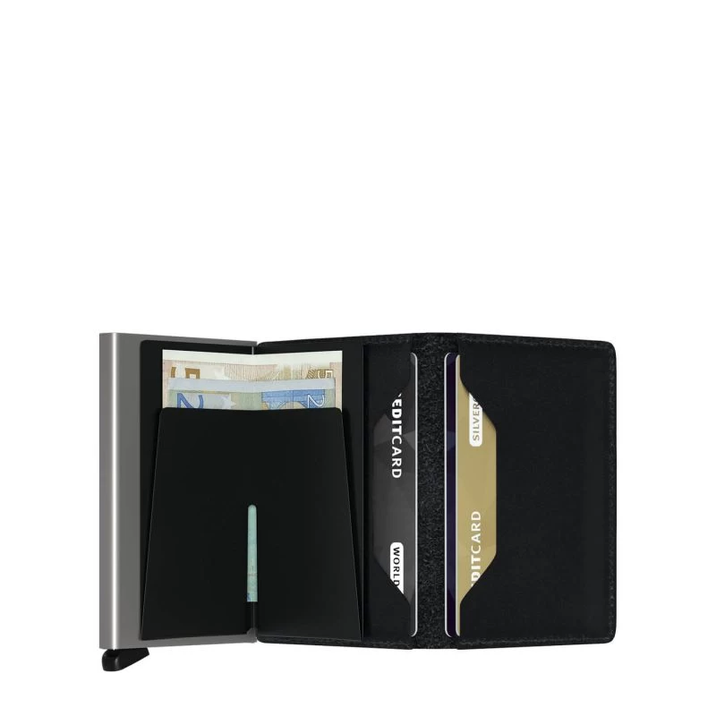 Ce porte-cartes Slimwallet Original est la version moderne et affinée des emblématiques de la marque hollandaise SECRID. Un format fin qui se glisse facilement dans les poches tout en conservant une multitude de rangements innovants. Fabriqué en Hollande et en Italie, en cuir de vache fleur corrigée d’origine européenne. Un cuir intemporel avec une finition naturellement brillante, lisse semi-aniline. Il s’adapte aisément avec tous les styles. De longs jours sont donc devant lui auprès de son utilisateur ! Le porte-cartes exposé ici est dans son coloris Black, un ton noir classique et très dense.