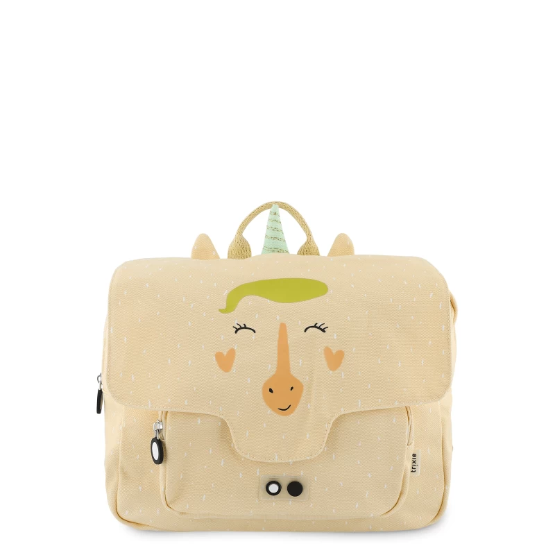 Le cartable Mrs Unicorn met à disposition un grand compartiment principal doublé pour protéger son contenu de l’humidité extérieure. Une grande poche plate est là aussi pour compléter l’organisation des effets personnels. L’espace d’accueil du cartable de 29 cm se ferme par le biais d’une fermeture éclair résistante et simple d’utilisation pour les enfants. En complément de rangement, une petite poche à zip se trouve sur la partie frontale pour accueillir une petite collation, un paquet de mouchoirs, etc.
