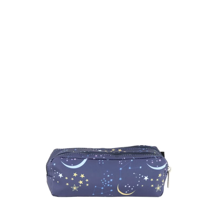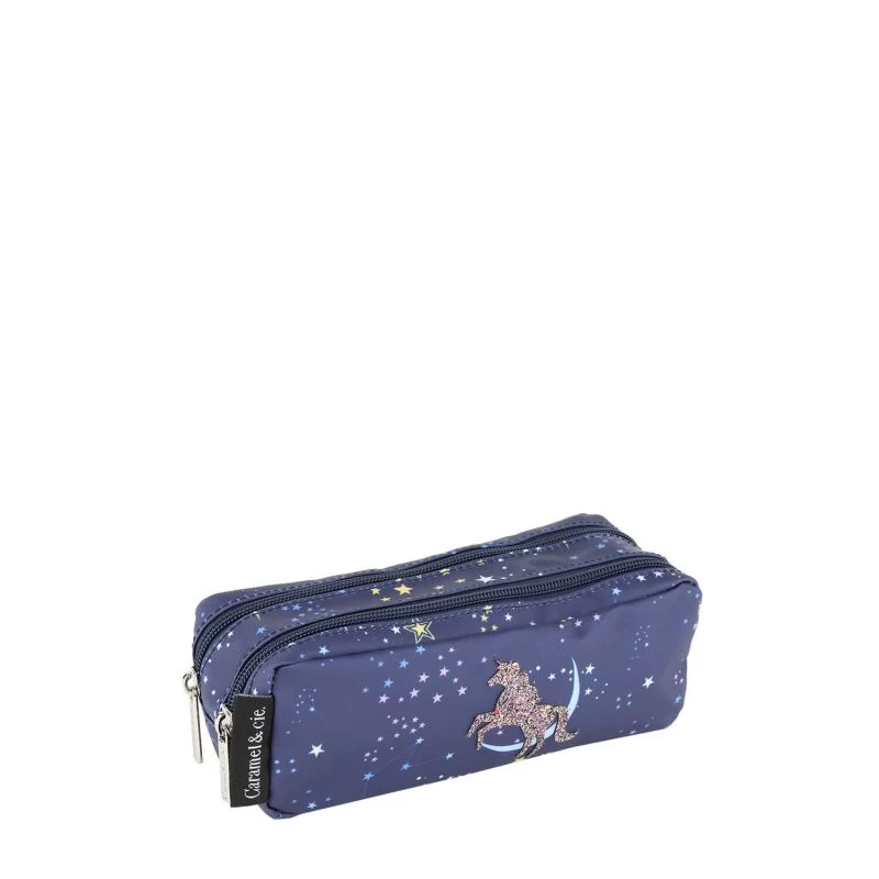 La trousse double Constellation en bleu marine 22 cm de la marque Caramel & Cie : une trousse à 2 compartiments parfaite pour tous ses crayons et stylos !