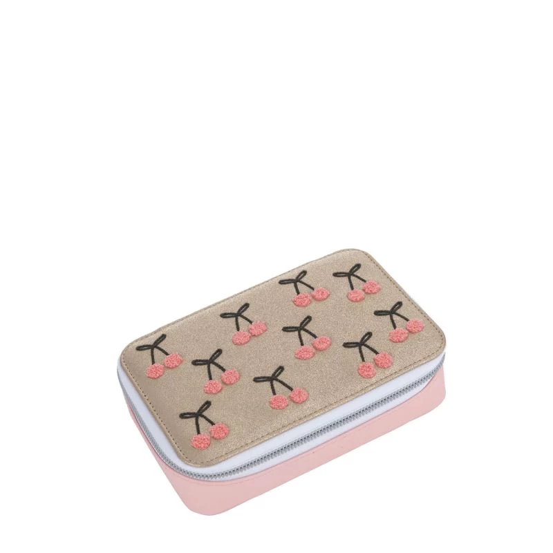 Le motif exposĂ© ici est Cherry Pompon. Il se prĂ©sente avec la combinaison du rose, du dorĂ© et des cerises ! Un imprimĂ© doux et totalement girly. C’est un classique indĂ©modable de la marque et on l’adore. Une magnifique broderie qui Ă©met plein de douceur et rĂ©vèle toute la beautĂ© du travail sur cette trousse. RĂŞverie et féérie sont au rendez-vous et tout est douceur. Vous verrez, le moindre dĂ©tail est finement et joliment travaillĂ©.