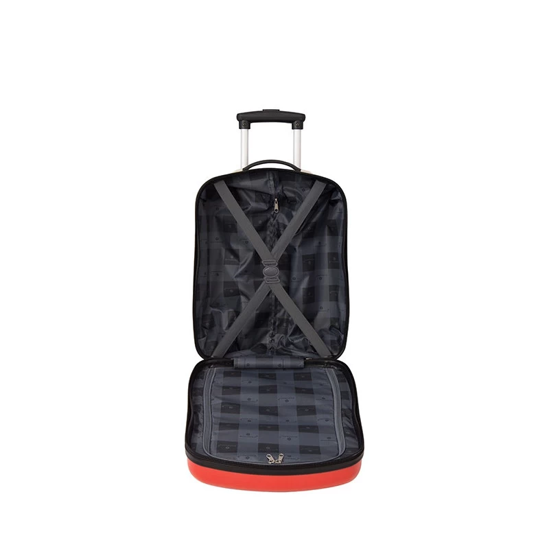 La valisette 2 roues Madisson permet de transporter avec organisation du linge, une paire de chaussures, un cahier de coloriage, une trousse de toilette et toutes affaires nécessaires pour un court séjour. Pour cela, elle dispose de 2 compartiments doublés munis d’un plateau séparateur souple à zip et d’une poche intérieure zippée. Les vêtements bien pliés peuvent être maintenus en place pendant le voyage à l’aide de 2 sangles élastiques.